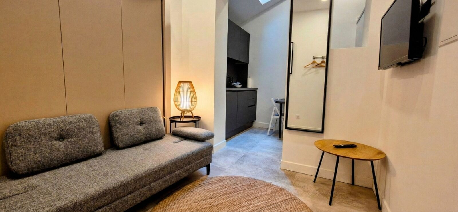Notre studio supérieur N°3 Les Etoiles, d'une surface de 15m² une cuisine équipée, une salle de bain, et une pièce à vivre avec un lit escamotable.